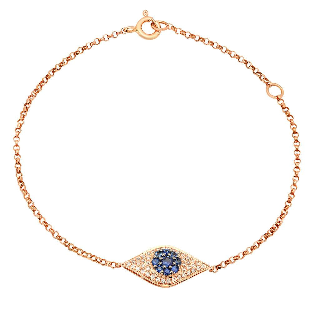 14K Yellow Gold Diamond Evil Eye Bracelet